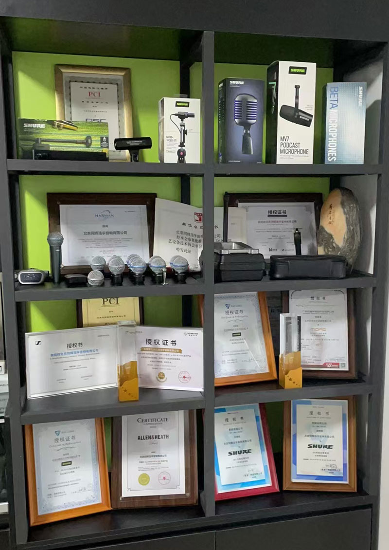 另外我公司核心做Shure 舒尔、Sennheiser森海塞尔、Crown皇冠、Allen&Heath 艾伦赫赛、YAMAHA雅马哈、Soundcraft声艺、MIDAS迈达斯、BOSE博士、Behringer/百灵达、K&M、Radial、DBX、QSC、TC、JBL、AKG、BBS、EV等等品牌代理,另外还有几个优良国产品牌全国总代。