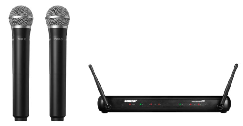 包括SVX88雙通道分集接收機,2個帶PG28話筒頭的手持發射機。