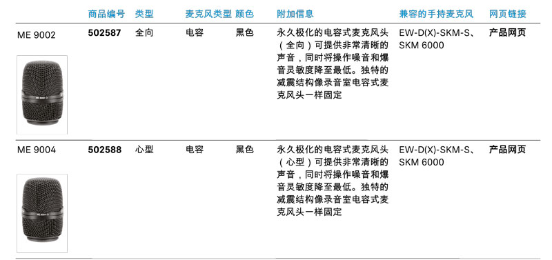 一体化数字无线手持套件,配备Sennheiser的优良产品e 835话筒头,适合用于唱歌或讲话。